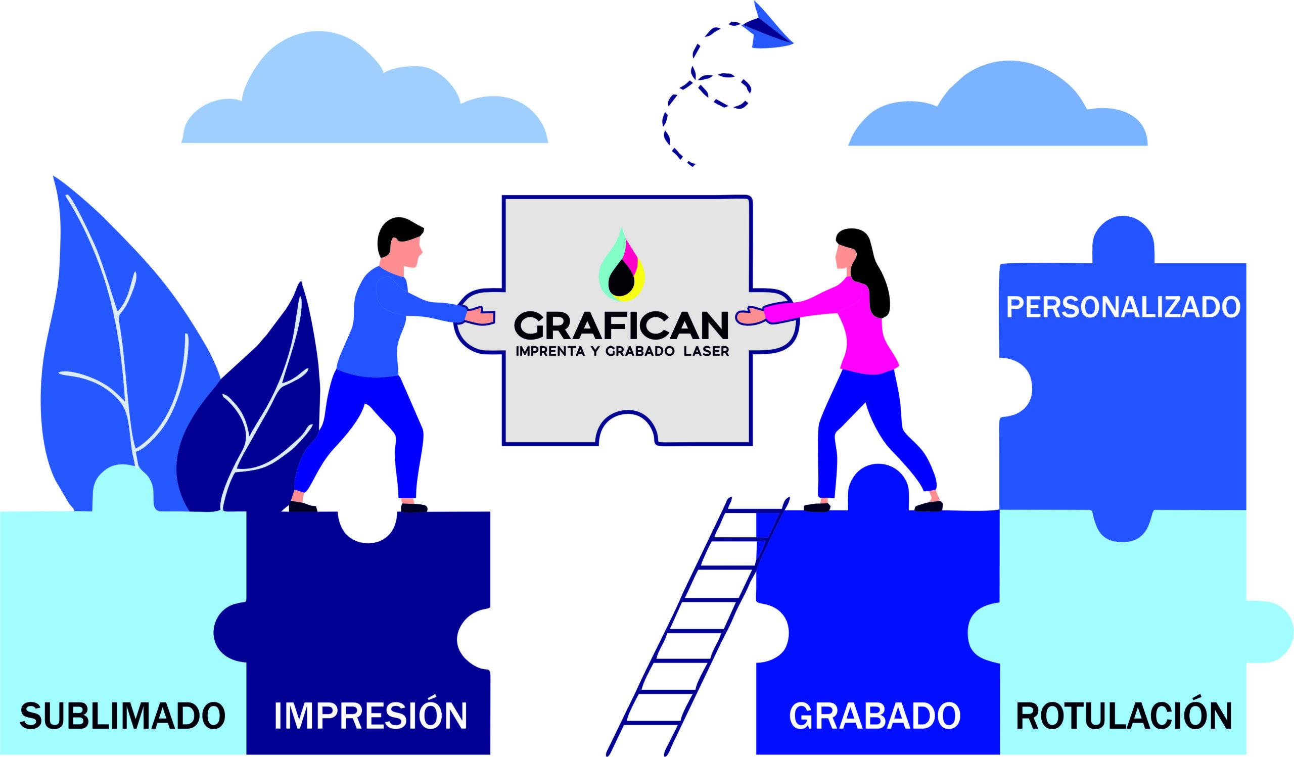 Unimos creatividad, tecnología y pasión para ofrecerte un servicio completo en imprenta, grabado láser y estampados personalizados DTF.